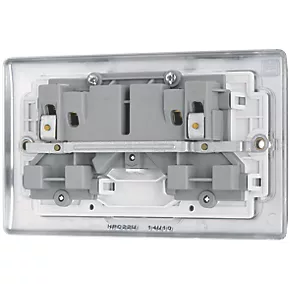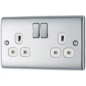 British General Nexus Metal 13A 2-Gang DP Switched Plug Socket Polished Chrome with White Inserts