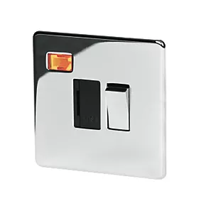 Crabtree Platinum 13A Switched Fused Spur with Neon Polished Chrome with Black Inserts