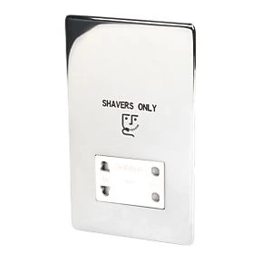 Crabtree Platinum 2-Gang Dual Voltage Shaver Socket 115 / 230V Polished Chrome with White Inserts