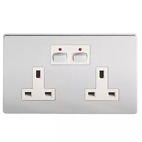 British General Nexus Metal 13A 2-Gang DP Switched Plug Socket Polished Chrome with White Inserts