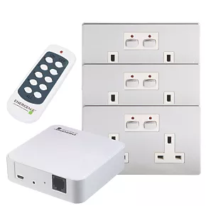 Smart home system with 3 x 2-gang sockets and remote control. Enables geofencing, schedules and timers. Works with IFTTT and Alexa.