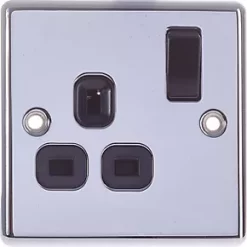 Knightsbridge SFR9000BC 13A 2-Gang DP Switched Double Socket Brushed Chrome with Black Inserts