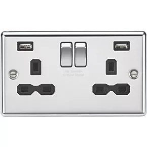 Be the first to review “Knightsbridge CL9224PC 13A 2-Gang SP Switched Socket + 2.4A 2-Outlet Type A USB Charger Polished Chrome with Black Inserts” Cancel reply