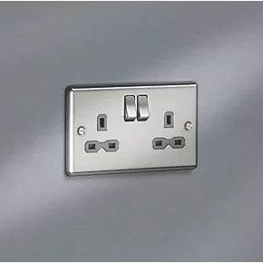 Knightsbridge CL9BCG 13A 2-Gang DP Switched Double Socket Brushed Chrome with Colour-Matched Inserts