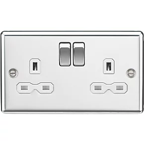 Knightsbridge CL9PCW 13A 2-Gang DP Switched Double Socket Polished Chrome with White Inserts