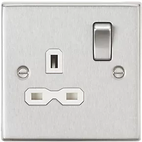Knightsbridge CS7BCW 13A 1-Gang DP Switched Single Socket Brushed Chrome with White Inserts