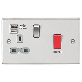 Knightsbridge CS8333UBCG 45 & 13A 1-Gang DP Cooker Switch & 13A DP Switched Socket + 2.4A 2-Outlet Type A USB Charger Brushed Chrome