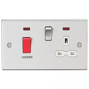 Knightsbridge CS83BCW 45 & 13A 2-Gang DP Cooker Switch & 13A DP Switched Socket Brushed Chrome with LED with White Inserts
