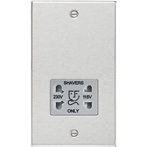 Knightsbridge CS89BCG 2-Gang Dual Voltage Shaver Socket 115 V / 230V Brushed Chrome with Colour-Matched Inserts