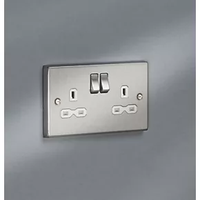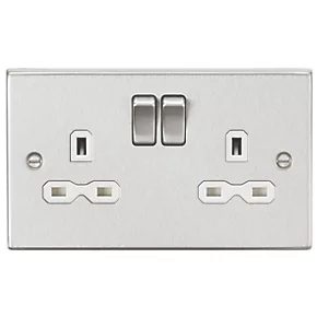 Knightsbridge CS9BCW 13A 2-Gang DP Switched Double Socket Brushed Chrome with White Inserts