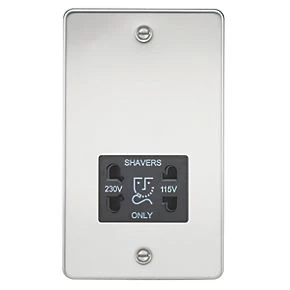 Knightsbridge FP8900PC 2-Gang Dual Voltage Shaver Socket 115 V / 230V Polished Chrome with Black Inserts