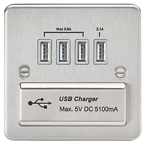 Knightsbridge FPQUADBCG 5.1A 4-Outlet Type A USB Socket Brushed Chrome with Colour-Matched Inserts