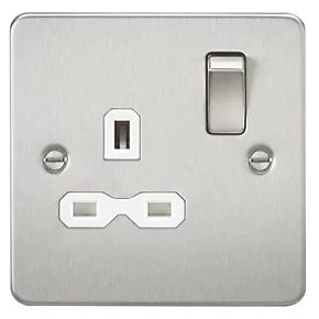 Knightsbridge FPR7000BCW 13A 1-Gang DP Switched Single Socket Brushed Chrome with White Inserts