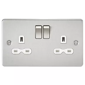 Knightsbridge FPR9000BCW 13A 2-Gang DP Switched Double Socket Brushed Chrome with White Inserts