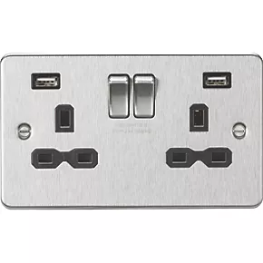 Be the first to review “Knightsbridge FPR9224BC 13A 2-Gang SP Switched Socket + 2.4A 2-Outlet Type A USB Charger Brushed Chrome with Black Inserts” Cancel reply
