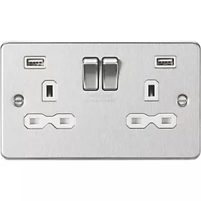 Knightsbridge FPR9224BCW 13A 2-Gang SP Switched Socket + 2.4A 2-Outlet Type A USB Charger Brushed Chrome with White Inserts