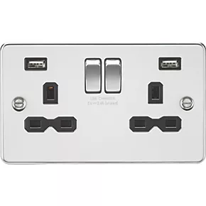 Be the first to review “Knightsbridge FPR9224PC 13A 2-Gang SP Switched Socket + 2.4A 2-Outlet Type A USB Charger Polished Chrome with Black Inserts” Cancel reply