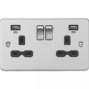 Be the first to review “Knightsbridge FPR9904NBC 13A 2-Gang SP Switched Socket + 2.4A 2-Outlet Type A USB Charger Brushed Chrome with Black Inserts” Cancel reply