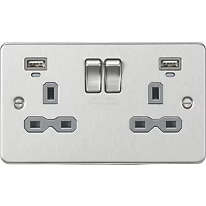 Be the first to review “Knightsbridge FPR9904NBCG 13A 2-Gang SP Switched Socket + 2.4A 2-Outlet Type A USB Charger Brushed Chrome with Colour-Matched Inserts” Cancel reply