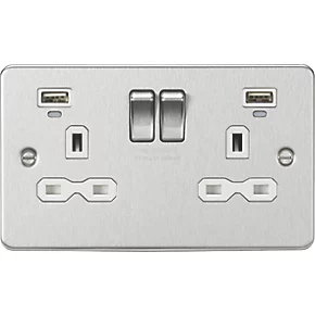 Be the first to review “Knightsbridge FPR9904NBCW 13A 2-Gang SP Switched Socket + 2.4A 2-Outlet Type A USB Charger Brushed Chrome with White Inserts” Cancel reply