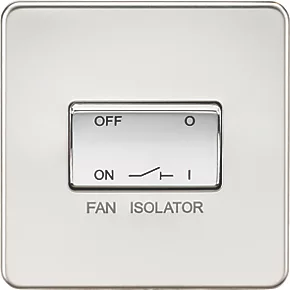 Screwless low profile metal design with built-in gasket. Provides a safe and simple method of isolating fan units in rooms such as en-suite bathrooms, family bathrooms, utility rooms and store rooms. Matching metal rocker.