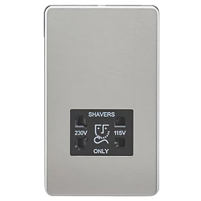 Knightsbridge SF8900BC 2-Gang Dual Voltage Shaver Socket 115 V / 230V Brushed Chrome with Black Inserts