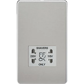 Screwless, flat plate, design dual voltage shaver socket. Ideal for bathroom upgrades.