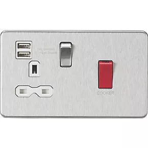 Knightsbridge SFR8333UBCW 45 & 13A 1-Gang DP Cooker Switch & 13A DP Switched Socket + 2.4A 2-Outlet Type A USB Charger Brushed Chrome with White Inserts