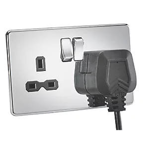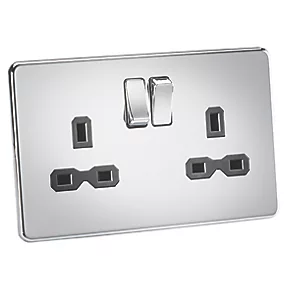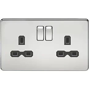 Knightsbridge SFR9000PC 13A 2-Gang DP Switched Double Socket Polished Chrome with Black Inserts