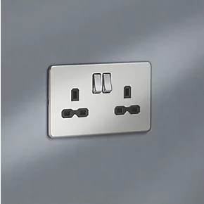 Knightsbridge SFR9000BC 13A 2-Gang DP Switched Double Socket Brushed Chrome with Black Inserts