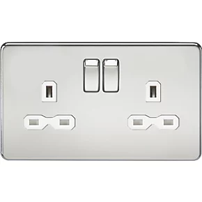 Knightsbridge SFR9000PCW 13A 2-Gang DP Switched Double Socket Polished Chrome with White Inserts