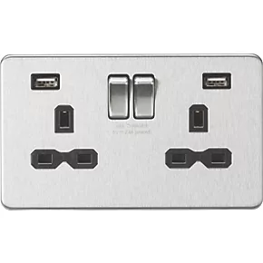 Be the first to review “Knightsbridge SFR9224BC 13A 2-Gang SP Switched Socket + 2.4A 2-Outlet Type A USB Charger Brushed Chrome with Black Inserts” Cancel reply