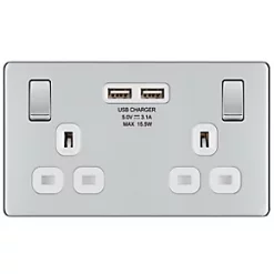 Knightsbridge SFR9224BC 13A 2-Gang SP Switched Socket + 2.4A 2-Outlet Type A USB Charger Brushed Chrome with Black Inserts