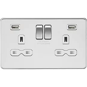Be the first to review “Knightsbridge SFR9224PCW 13A 2-Gang SP Switched Socket + 2.4A 2-Outlet Type A USB Charger Polished Chrome with White Inserts” Cancel reply