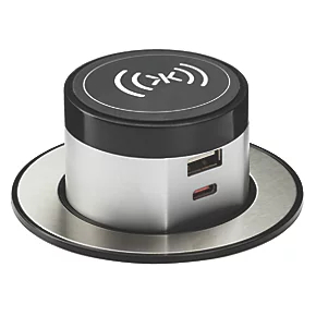 Pop-up socket combines the convenience of a wireless charging pad with Fastcharge, able to switch voltages between 5V and 12V, to deliver the maximum input for the device. Offers up to 50% charge in under 30 minutes with compatible devices.