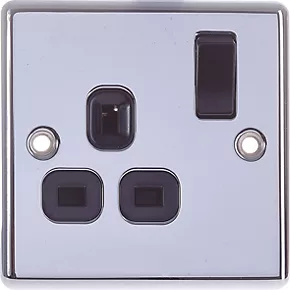 LAP 13A 1-Gang SP Switched Plug Socket Polished Chrome with Black Inserts