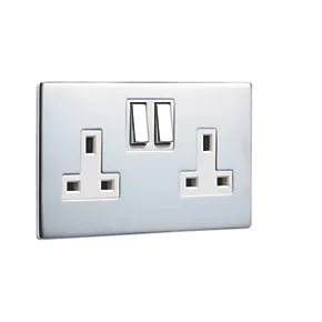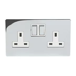 LAP 13A 2-Gang DP Switched Plug Socket Polished Chrome with White Inserts 5 Pack