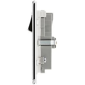 Easy to install, switched socket with USB charger. Removable, decorative screwless flat-plate and slim, clip-on profile. Supplied with 10mm spacer for fitting into a 25mm box. Ideal for redecoration projects.