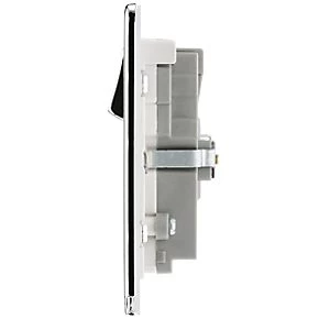 Easy to install, switched socket with USB charger. Removable, decorative screwless flat-plate and slim, clip-on profile. Supplied with 10mm spacer for fitting into a 25mm box. Ideal for redecoration projects.