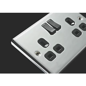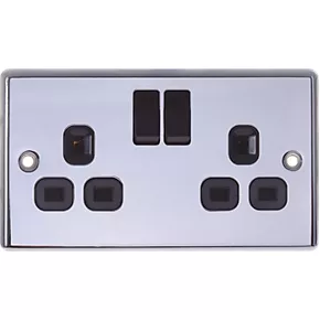 LAP 13A 2-Gang SP Switched Plug Socket Polished Chrome with Black Inserts