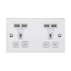 Be the first to review “LAP 13A 2-Gang Unswitched Socket + 4.2A 4-Outlet Type A USB Charger Polished Chrome with White Inserts” Cancel reply