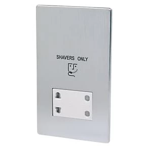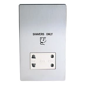 LAP 2-Gang Dual Voltage Shaver Socket 115 / 230V Brushed Chrome with White Inserts