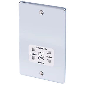 LAP 2-Gang Dual Voltage Shaver Socket 115 / 230V Polished Chrome with White Inserts