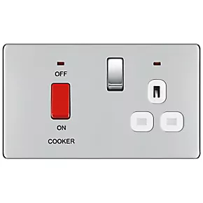 Easy to install, cooker switch and socket with removable, decorative screwless flat-plate. Slim, clip-on profile to complement any interior decor. Ideal for redecoration projects.