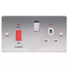 LAP 45A 2-Gang DP Cooker Switch & 13A DP Switched Socket Polished Chrome with LED with White Inserts
