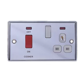 LAP 45A 2-Gang DP Cooker Switch & 13A DP Switched Socket Polished Chrome with Neon with White Inserts