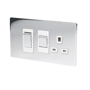 LAP 45A 2-Gang DP Cooker Switch & 13A DP Switched Socket Polished Chrome with White Inserts