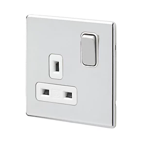 MK Aspect 13A 1-Gang DP Switched Plug Socket Polished Chrome with White Inserts