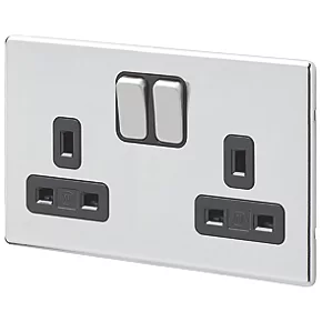 Knightsbridge SFR9000BC 13A 2-Gang DP Switched Double Socket Brushed Chrome with Black Inserts