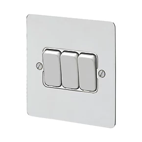 MK Edge 10AX 3-Gang 2-Way Switch Polished Chrome with White Inserts